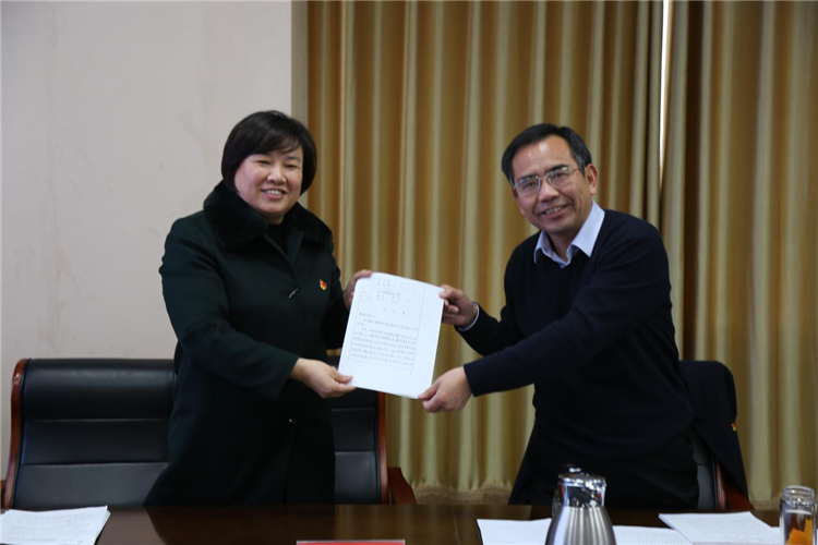 台前县委书记常奇民诵读完县委副书记李志华25年前的入党志愿书后,亲手将入党志愿书复印件送给其本人
