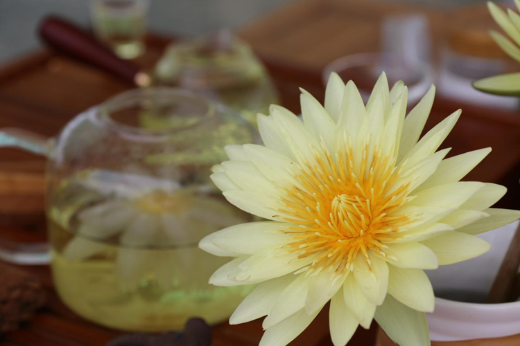 啜一口莲花茶,品恬淡生活。(常玉国)