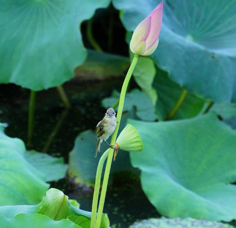 惟有绿荷红菡萏,卷舒开合任天真。(常玉国)