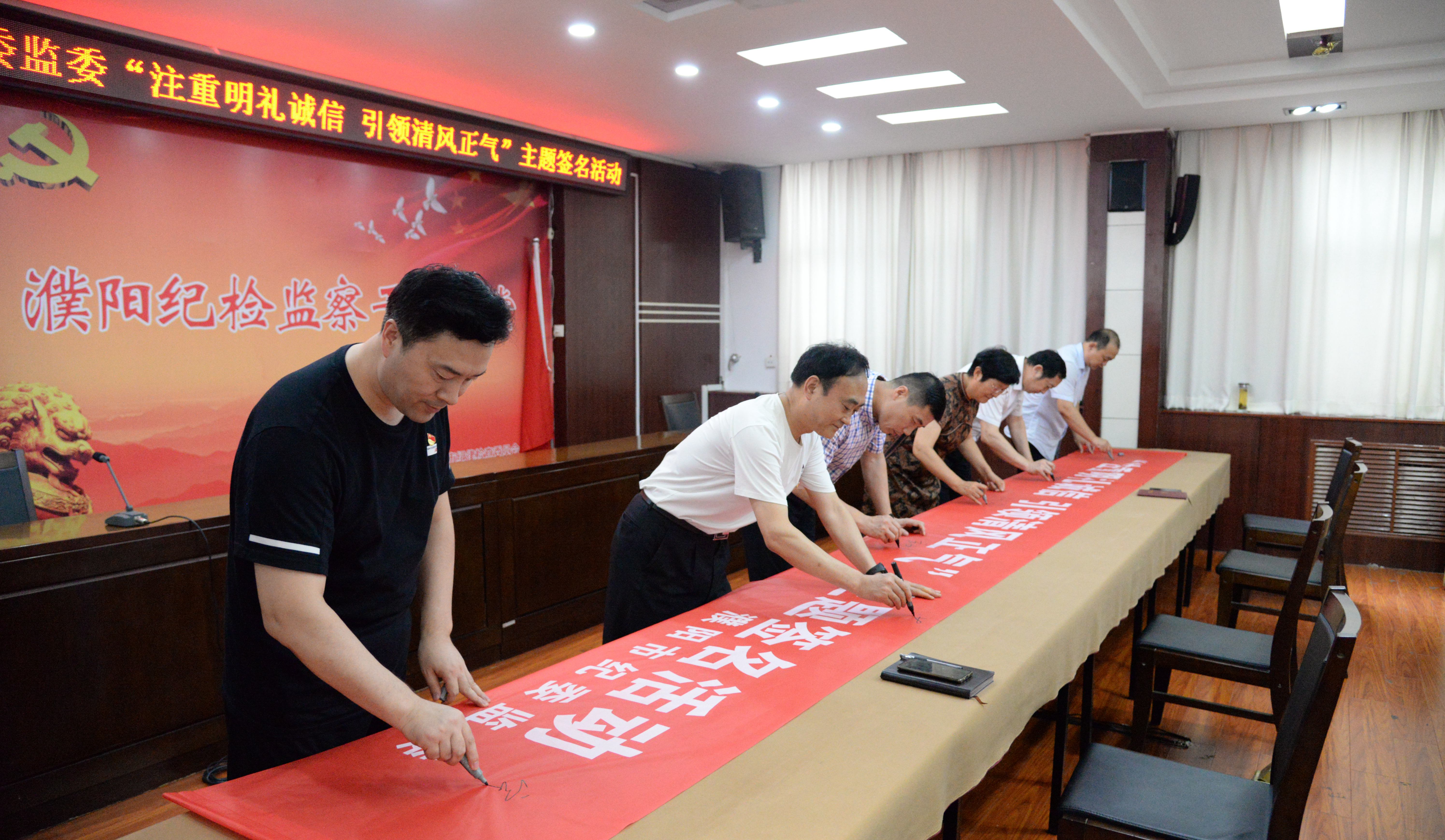 活动现场,“注重明礼诚信引领风清气正”的红色条幅分外醒目,广大纪检监察干部纷纷拿起签字笔郑重地在横幅上写下自己的名字,并承诺争做“诚实守信”的纪检监察人,以实际行动来践行文明、诚信守诺、遵纪守法。