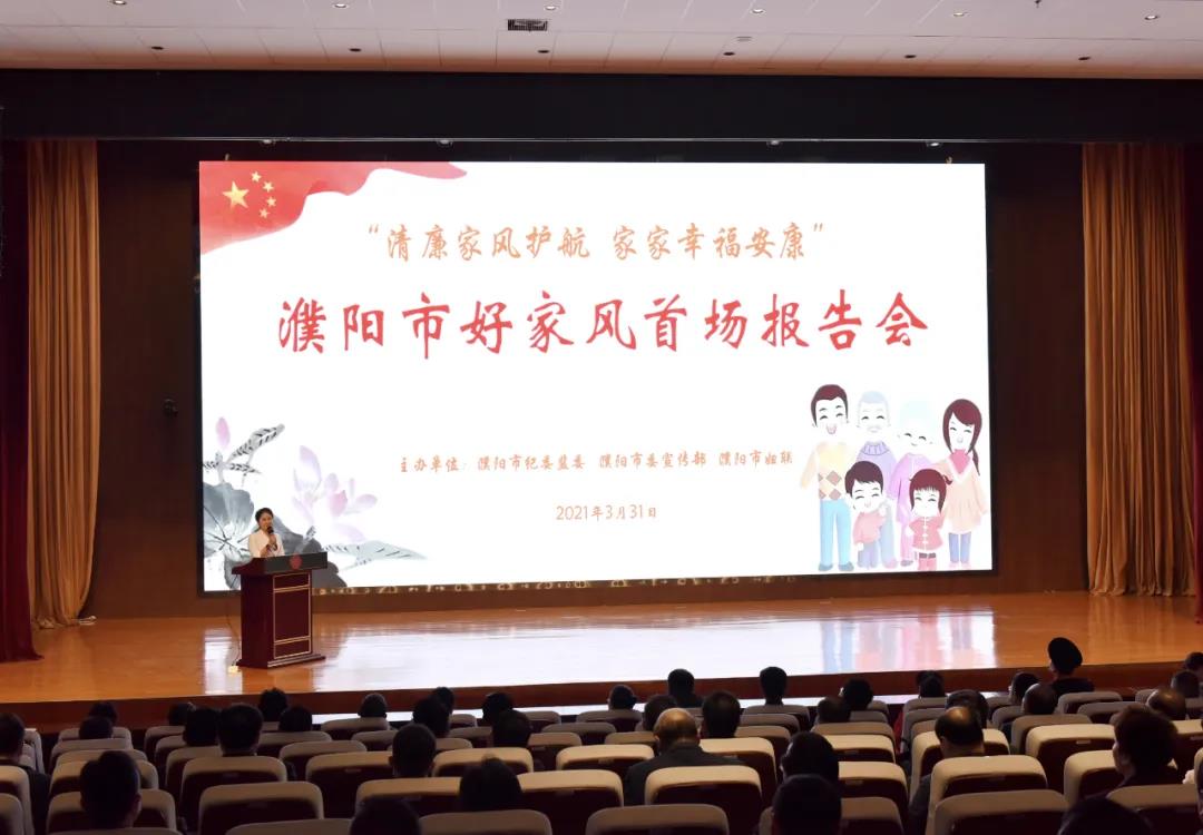 3月31日,由市纪委监委、市委宣传部、市妇联联合主办的“清廉家风护航 家家幸福安康”濮阳市好家风首场报告会在市委党校举行。省妇联党组成员、副主席张宇辉出席活动并致辞。市委常委、市纪委书记、市监委主任李向前,市人大常委会副主任陈景涛,副市长、市妇儿工委主任王延青,市政协副主席宋伯迅,濮阳军分区副司令员张希武出席活动。