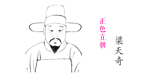 梁天奇清正廉洁,直言敢谏,弹劾不避权贵。史载:(梁天奇)任御史在职累岁,正色立朝,扶持公道。其面折廷争,或帝盛怒,则执简却立,伺怒稍解,复前抗辞。旁侍者远观,蓄缩悚汗,目之曰‘殿上虎’。”