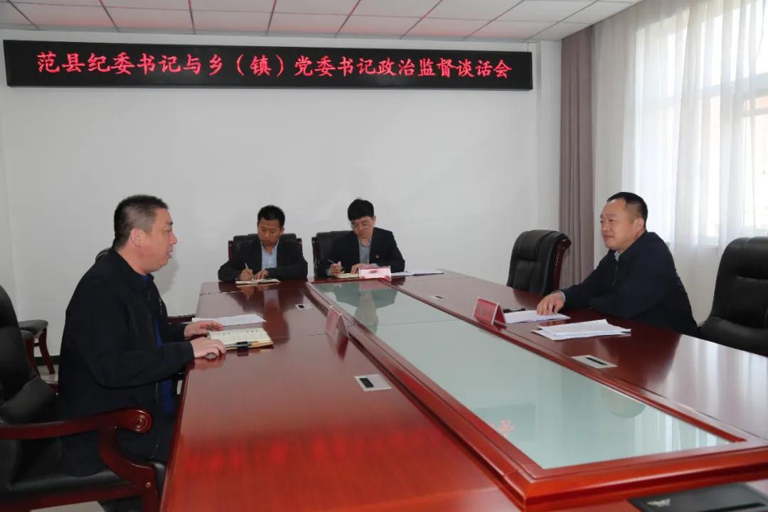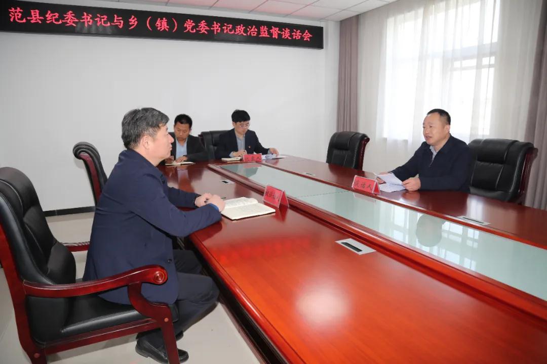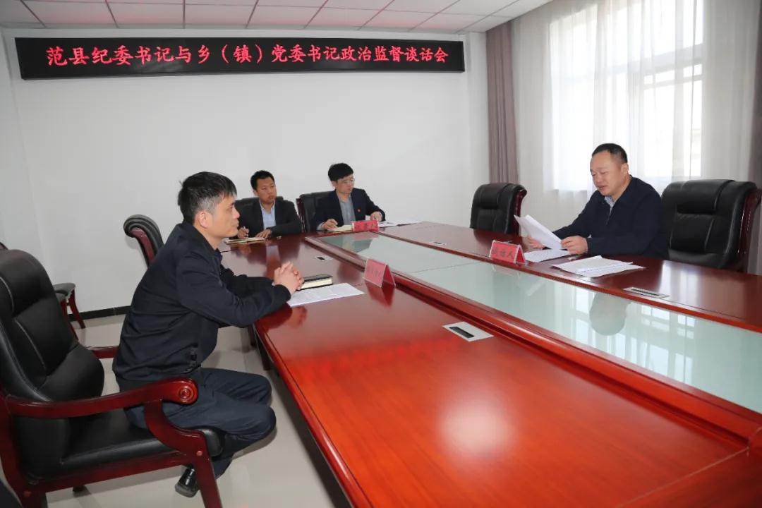 为进一步做实做细监督第一职责,聚焦“关键少数”,加强对“一把手”和领导班子的政治监督,4月10日,县委常委、县纪委书记、县监委代主任杨志勇分别对王楼镇、白衣阁乡、高码头镇党委书记开展政治监督谈话。