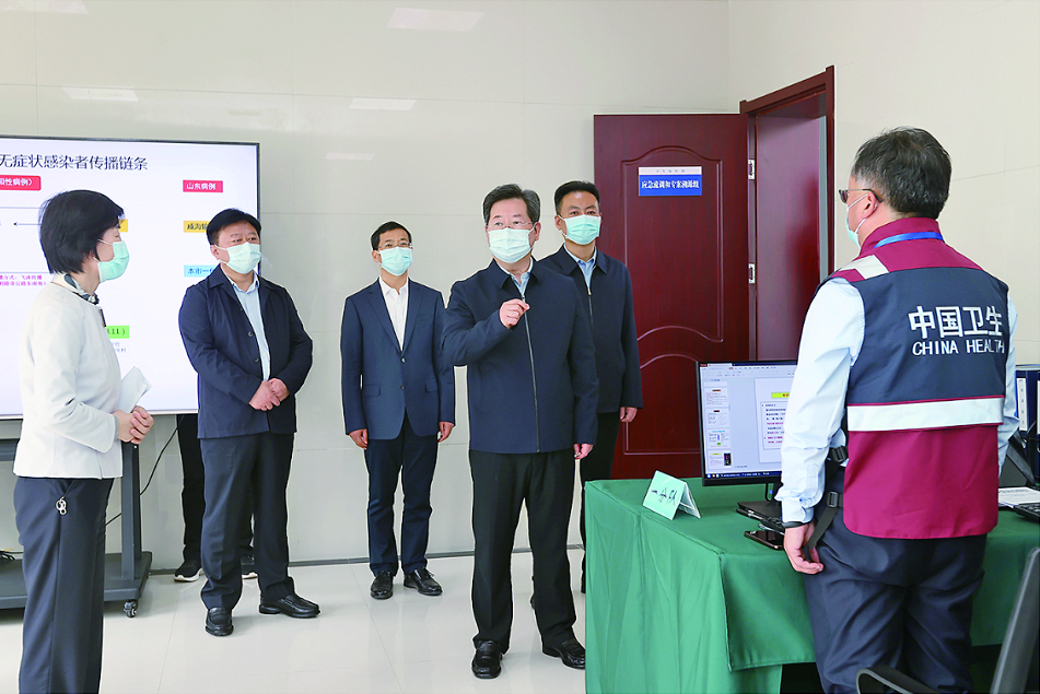 4月12日,省委书记楼阳生到濮阳市新冠肺炎疫情防控指挥部,检查指导流调溯源、应急值守、数字防线建设等工作。河南日报记者董亮蔡迅翔摄