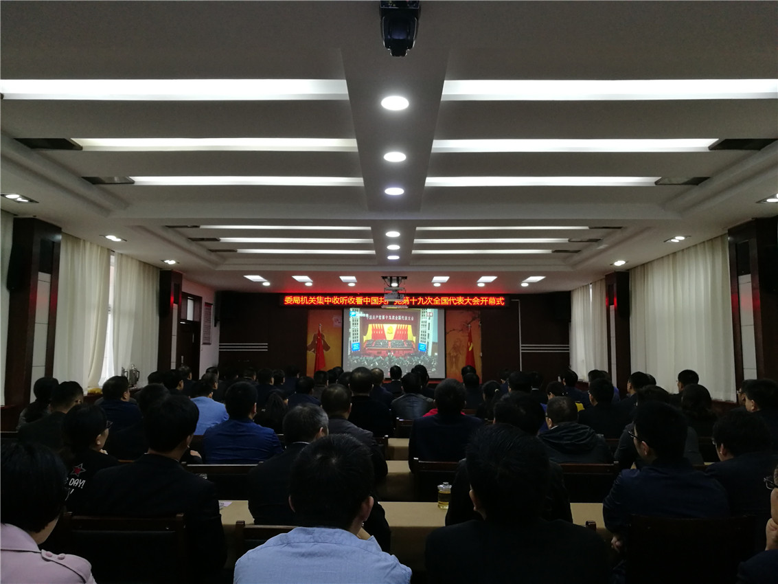 机关党员干部认真聆听习近平总书记代表第十八届中央委员会向大会的题为《决胜全面建成小康社会 夺取新时代中国特色社会主义伟大胜利》的报告