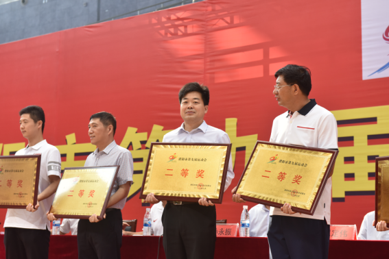 九运会开幕式上的市纪委代表团台上领奖