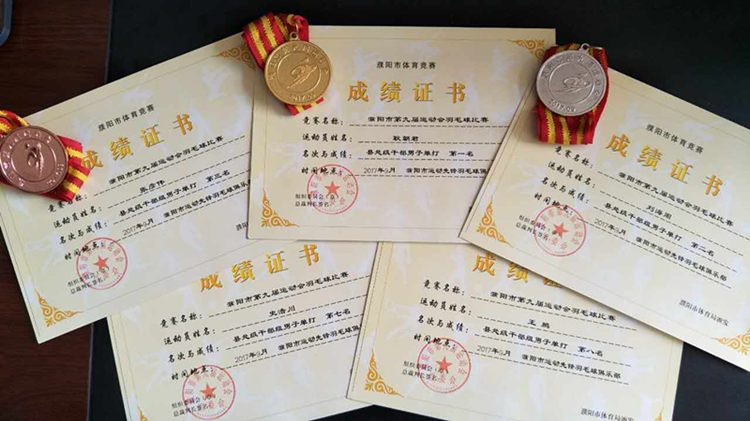 耿朝君、刘海周、张彦伟分别获得县处级干部羽毛球男子单打金银铜牌