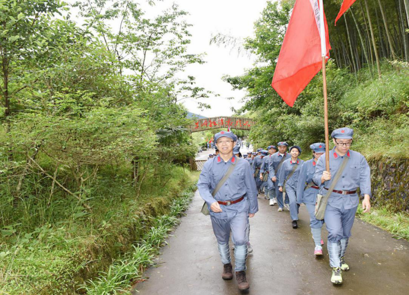 党员干部重走朱毛挑粮小道,踏着革命先辈艰苦奋斗的道路,切身体验红军当年的艰辛不易。