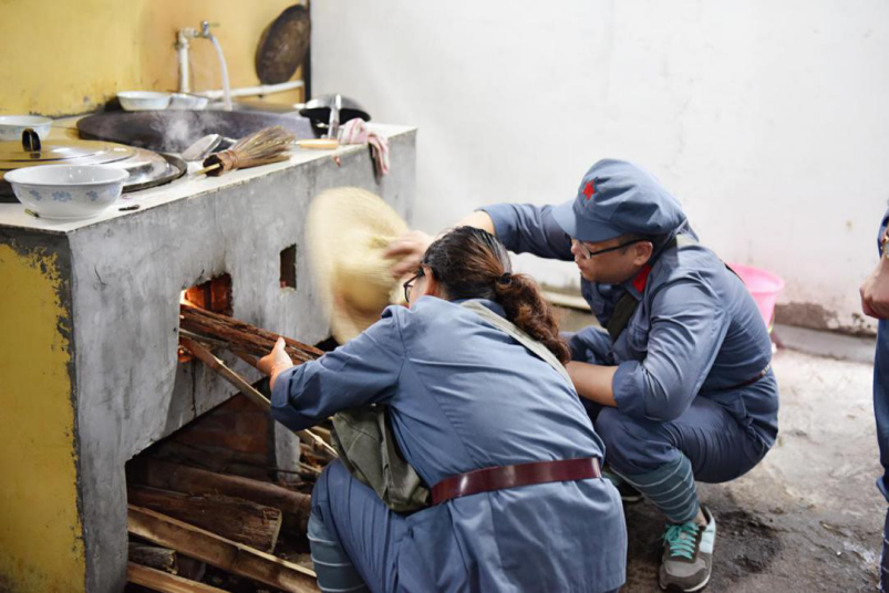 大家在荆竹山农家自作红军餐。