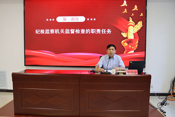 市纪委监委第一监督检查室主任董海堂围绕“如何做好监督执纪工作”主题,系统讲解监督执纪的重点领域、方式方法和实践路径,并结合安阳本地监督案例,从办案安全责任落实、风险隐患排查、应急处置流程等方面入手,通过情景模拟、案例警示等方式,强化新进人员的办案安全意识和规范意识。