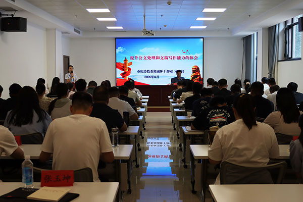 市纪委监委离退休干部室主任宋晓伟围绕公文写作规范和保密工作,以具体案例为载体深入解析公文格式、行文逻辑及常见误区,并系统讲解保密法规、涉密载体管理等核心内容,既帮助提升新进人员公文撰写能力,也强化其保密意识。