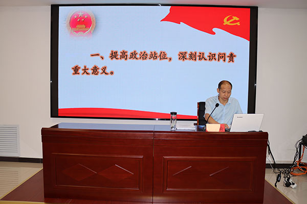 市纪委监委驻市检察院纪检监察组组长王振云紧扣“精准规范问责 促进担当作为”主题,深度解析问责与担当的辩证关系,通过政策解读、案例分析,清晰阐释精准问责的标准、程序及容错边界,强调问责不是目的,激励担当作为才是关键。