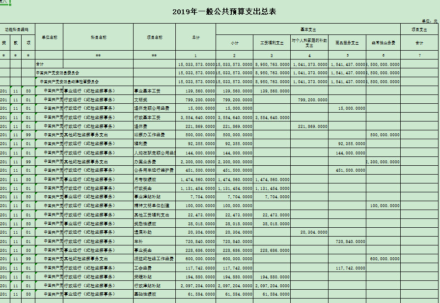 安阳县纪委 201 9 年一般公共预算支出年初预算为 1 503 万元。主要用于以下方面:工资福利支出 895 万元,占 59 % ;对个人家庭补助支出 104 万元,占 0.0 6 % ;商品服务支出 154 万元,占 0. 10 % ;经常性业务费支出 350 万元,占 23 % 。