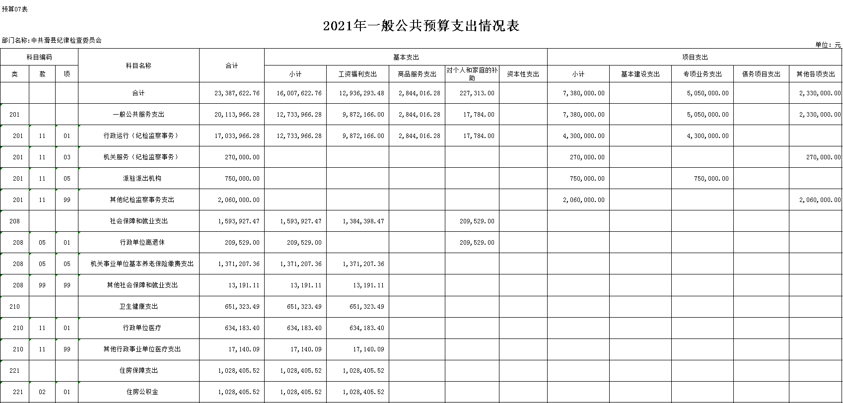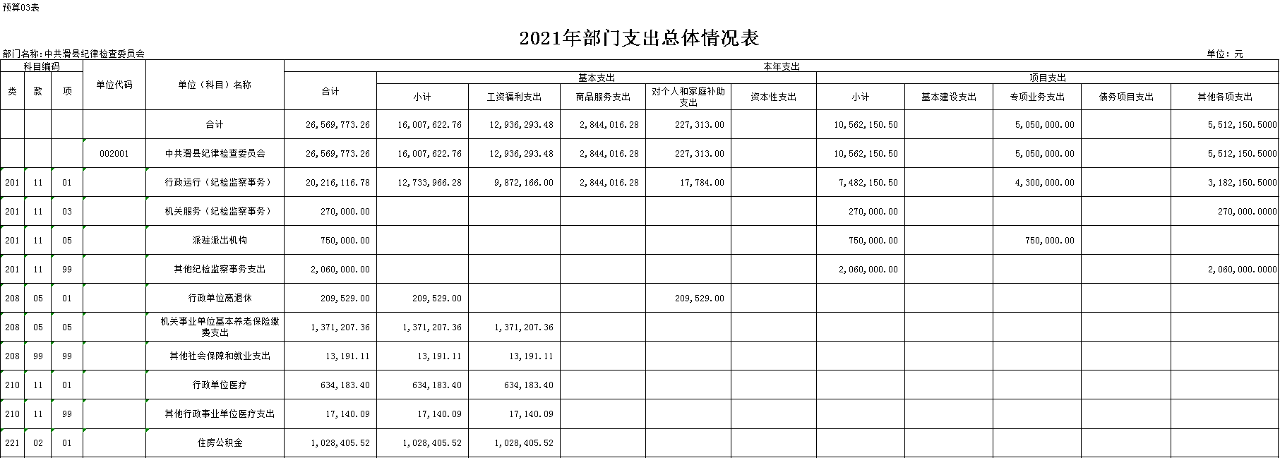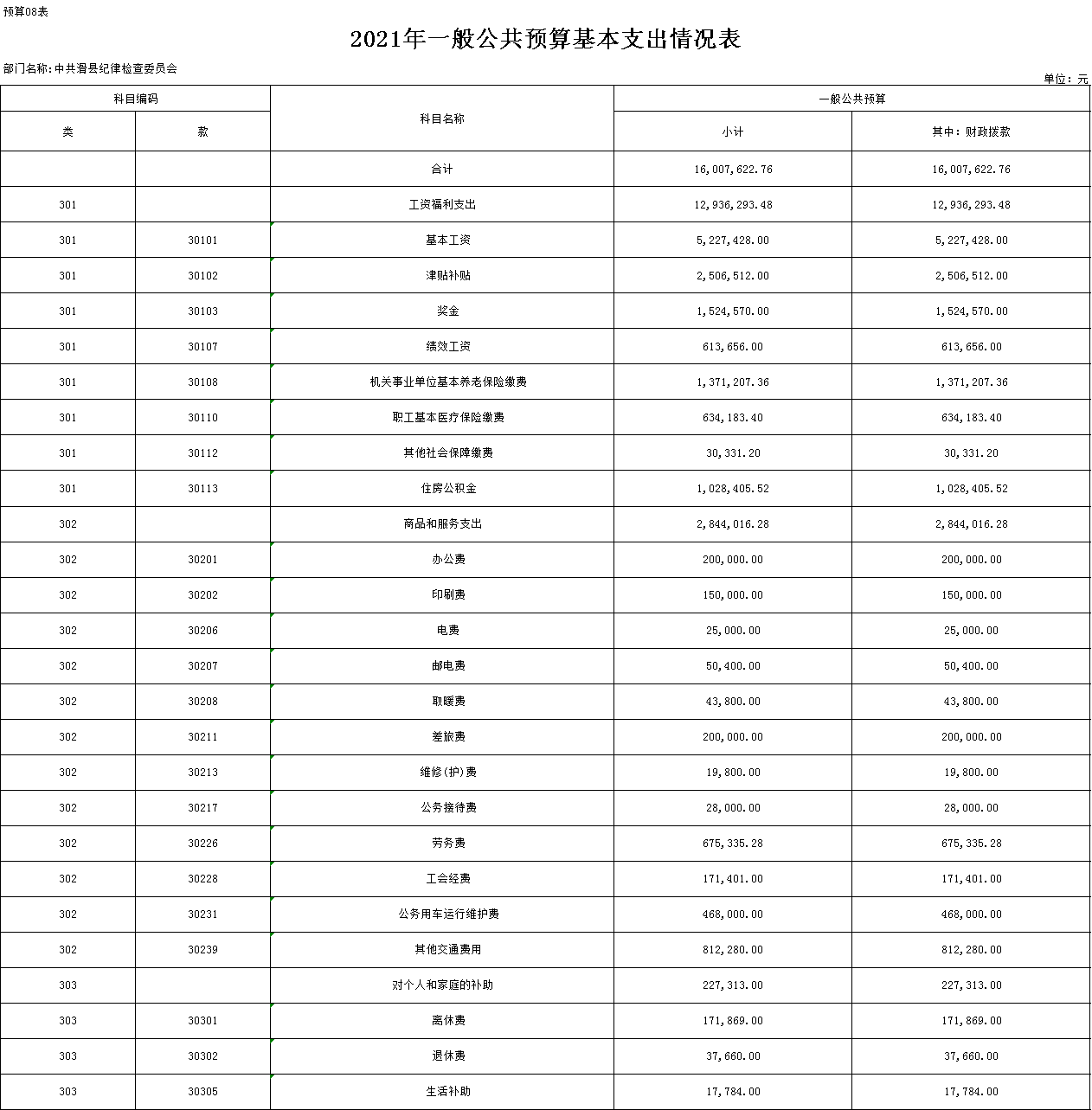 附件:中共滑县纪律检查委员会2021年度部门预算表
