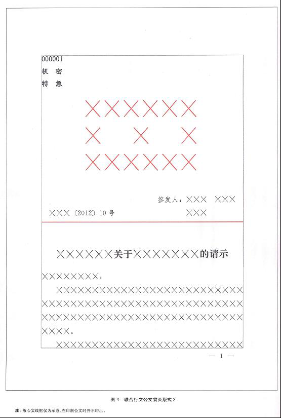1.份号:如需标注份号,一般用6位3号阿拉伯数字,顶格编排在版心左上角第一行。