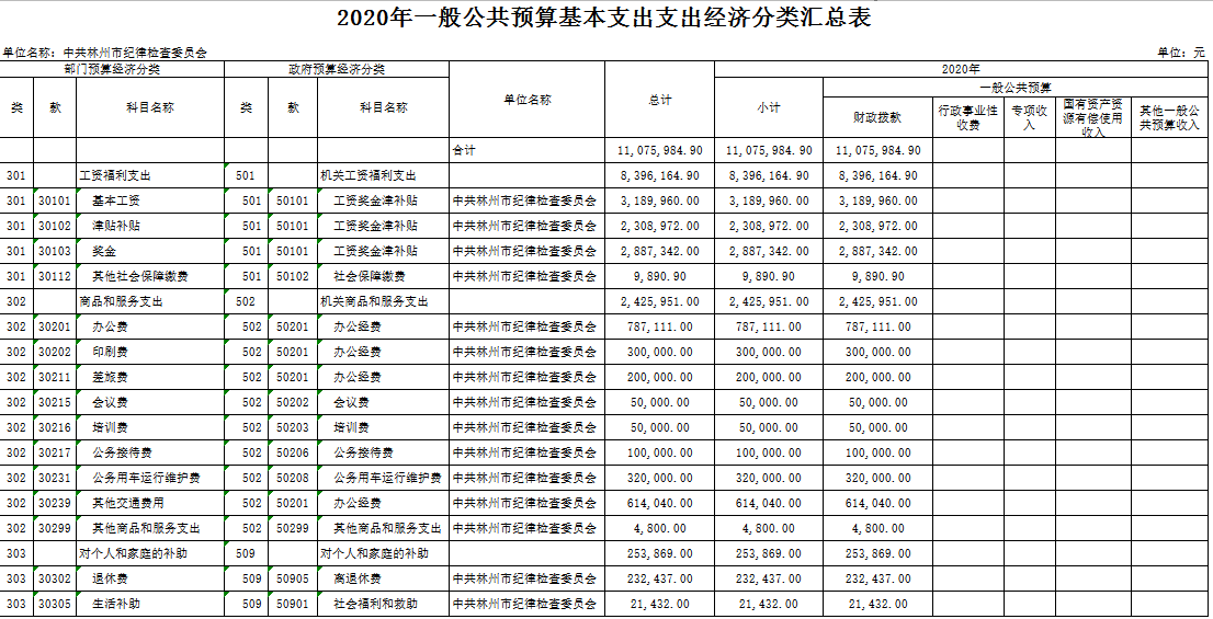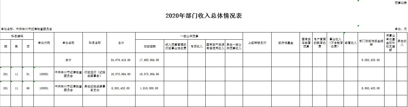 附件: 中共林州市纪律检查委员会2020年度部门预算表