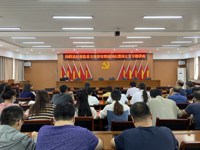 国庆将至,9月23日,汤阴县纪委监委举办文化讲堂暨迎国庆爱国主义专题讲座。