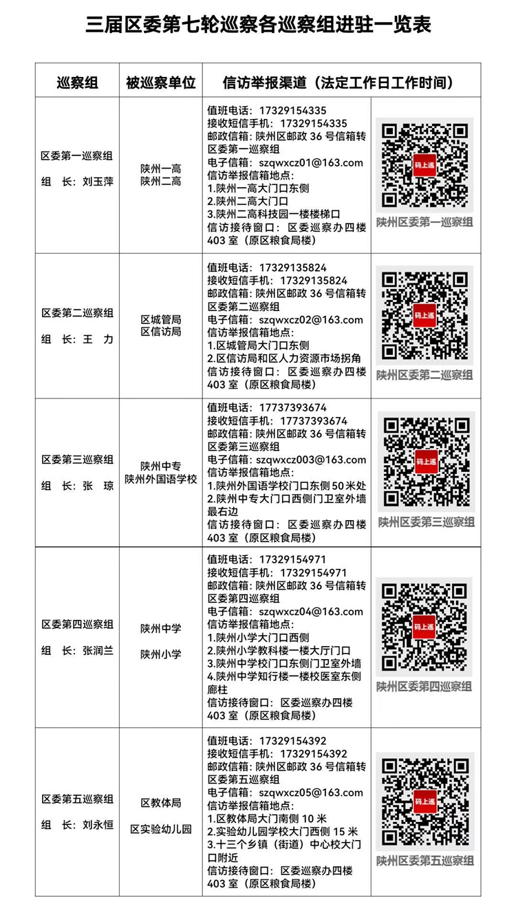 按照陕州区委统一部署,截至7月17日,三届区委第七轮巡察完成进驻工作。区委5个巡察组对区教体局、区城管局、区信访局、陕州中学、陕州一高、陕州二高、陕州中专、陕州外国语学校、陕州小学、实验幼儿园10家单位开展常规巡察。