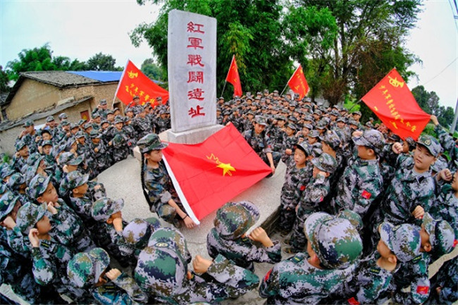 云南省曲靖市的少先队员们在红军战斗遗址聆听革命故事,面对队旗庄严宣誓,做共产主义事业的“接班人”。(云南省曲靖市纪委监委供武敬周摄)
