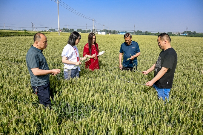 漯河市源汇区纪委监委工作人员与农技人员一同走进田间地头,查看小麦长势,精准监督护航夏粮丰产丰收。(漯河市源汇区纪委监委 尤亚辉 摄)