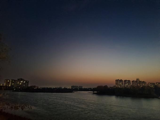 一道残阳铺水中,半江瑟瑟半江红。在唐代伟大现实主义诗人白居易故里新郑市双洎河畔,带着诗情画意欣赏这冬日晚霞之美。(新郑市纪委监委 张培 摄)