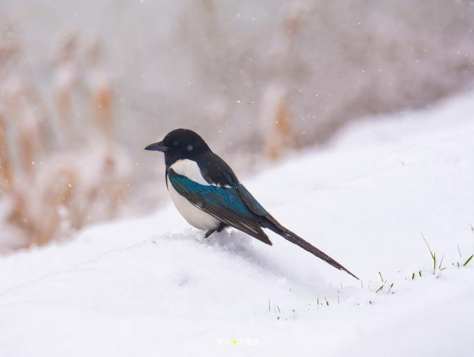 万物冬藏,静待春来。一只喜鹊出现在马颊河国家湿地公园的冬野里,在寒风中静静的守候着,伺机捕捉即将出现的猎物。(南乐县纪委监委 苏敬远 摄)