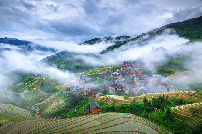 清晨,层层叠叠的梯田被白茫茫的云雾笼罩,宛如人间仙境。(郑州市金水区纪委监委 付全 摄)