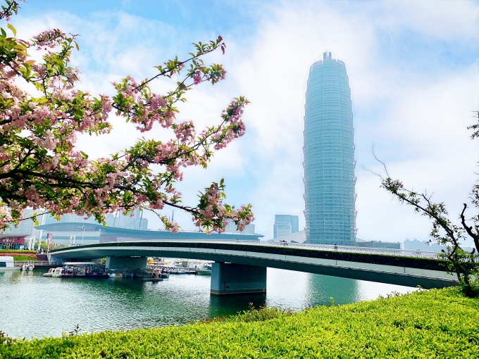 春光明媚,景色怡人,簇簇花枝探出湖岸,在风中摇曳着,如意湖畔,游客们驻足拍下这美丽的春光,尽情享受最美的人间四月天。(郑州市金水区纪委监委 柴丽萍 摄)