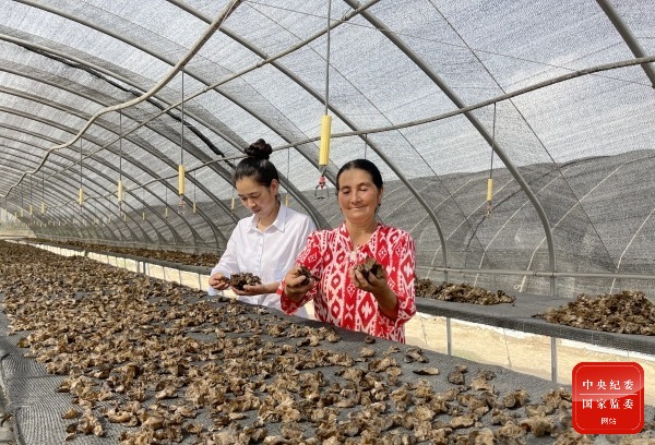 处暑是黑木耳丰收的季节,走进新疆维吾尔自治区轮台县哈尔巴克乡卡西比西村黑木耳生产基地,处处洋溢着丰收的喜悦,晾晒场上成片成片的黑木耳在阳光的照耀下正完美“变身”。(新疆维吾尔自治区轮台县纪委监委供 李新芳 摄)
