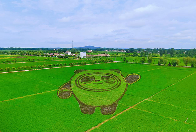 七月份,“冰墩墩”“雪容融”等卡通形象图案巨幅五彩稻田画呈现在留庄镇美丽田地中,成为乡村一道靓丽的风景线。(确山县纪委监委 余涛 摄)