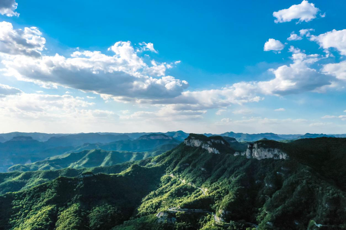 七月盛夏,登顶云台山茱萸峰,极目远望,群山苍翠,峰回路转,碧宇澄澈,云卷云舒,好一派北国风光。(武陟县纪委监委 郭潇 摄)