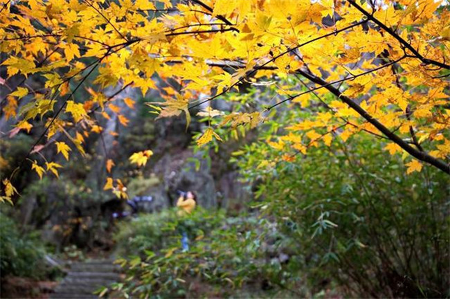 小雪悄然至,寒风起山间。葱茏的翠竹与金黄的树叶交相辉映,勾勒出一幅色彩斑斓的美丽画卷。(摄影:丁罗义)