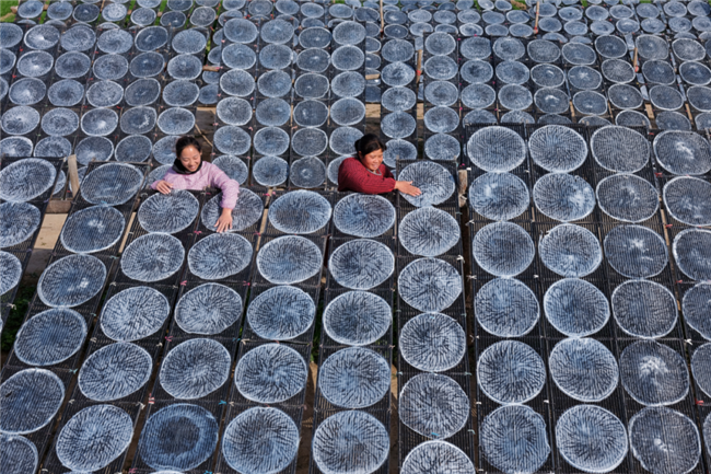 眼下正是粉皮加工的时节,中原地区的群众利用当地丰富的资源手工制作粉皮,一张张丝绸般的粉皮,将成为冬日里的佳肴。(摄影:杨涛)