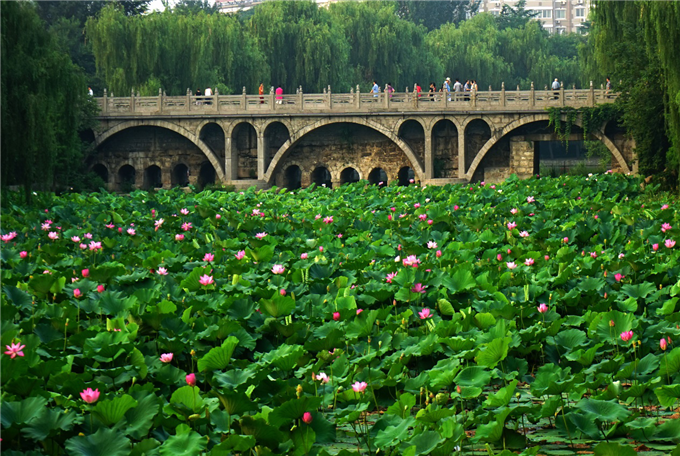 盛夏时节,安阳市人民公园一池莲花竞相开放。层层碧绿中点点红花让人倍感清凉,也为夏日平添了无限诗情画意,吸引了不少市民和游客驻足观赏。(安阳市龙安区纪委监委王自强摄)