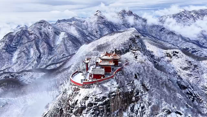 冬天的山河大地,一片银装素裹的世界。那些挺拔的山峰在雪白的装点下更加峻秀,仿佛是大自然用白色的画笔勾勒出的一幅雄浑壮美的画卷。(南召县纪委监委 刘召阳 摄)
