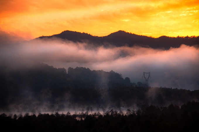冬日的清晨,太阳冲出了云层的桎梏,破晓而出,万丈霞光染红了云层,火红的太阳和雪白的云雾构成了一道绝美的景观。(鹿邑县纪委监委 郭磊 摄)