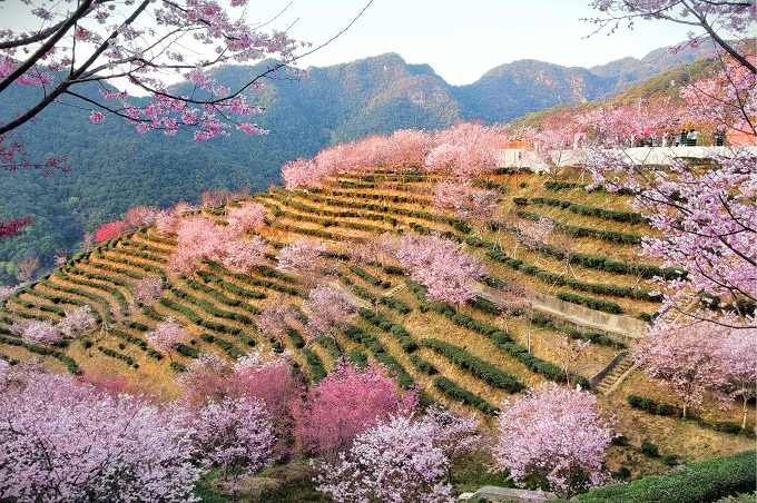 惊蛰启蛰,山樱漫坡,层叠的绿意与烂漫的粉白交织,风过花梢,漫山春意漫过田垄。(新密市纪委监委供 朱留波 摄)