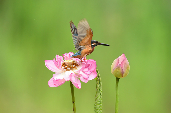 炎炎夏日,荷花飘香,引得翠鸟前来一嗅芬芳,呈现出生机勃勃景象。(郑州市金水区纪委监委 张琦 摄)