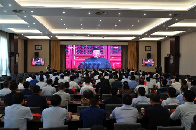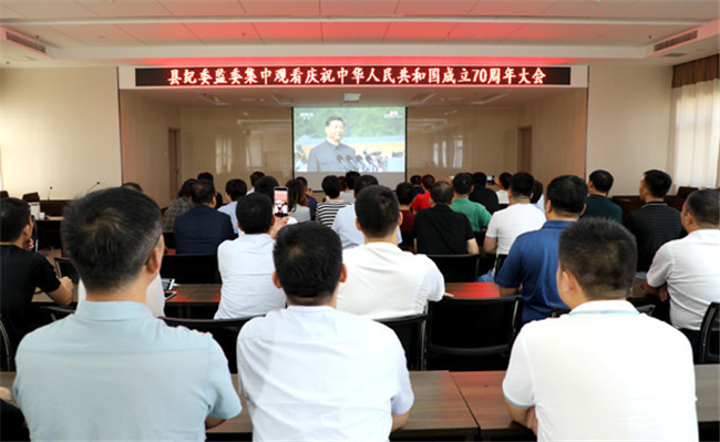 河南省纪委监委、省委巡视机构的全体党员干部职工,集中收看了庆祝中华人民共和国成立70周年大会,认真收听了中共中央总书记、国家主席、中央军委主席习近平的重要讲话,同步收看了阅兵式和群众游行盛况。(摄影:张翼飞)