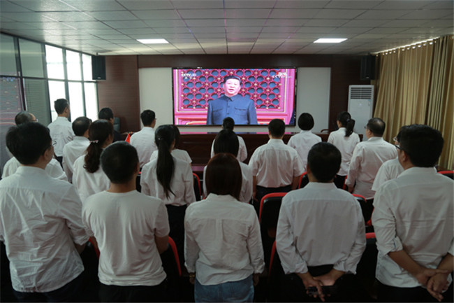 开封市纪委监委机关干部共同观看庆祝中华人民共和国成立70周年大会盛况直播。(摄影:伟弟)