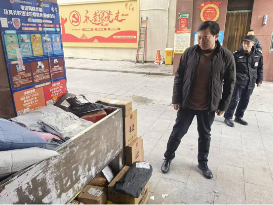▲图为市纪委监委第三执纪执法协作区到住宅小区排查“快递送礼”问题线索