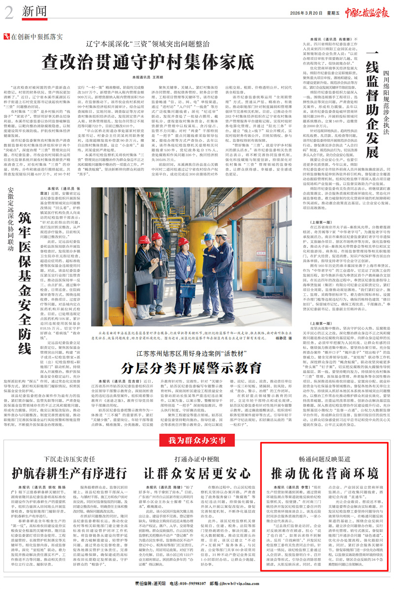 光让企业敢说、想说还不够,关键是要帮企业解决实际难题。开发区纪检监察工委坚持问题导向与效果导向相统一,在畅通问题反映渠道的基础上,围绕企业反映问题,建立涉企问题督办台账,实行清单化管理、销号式落实,督促职能部门开通涉企问题“绿色通道”,优化分办处置流程,强化跟踪问效。同时,紧盯涉企服务关键环节,督促职能部门进一步优化办理流程,以监督实效助推营商环境持续优化。目前,辖区企业反映的34个急难愁盼问题已全部解决。(通讯员 李雪)