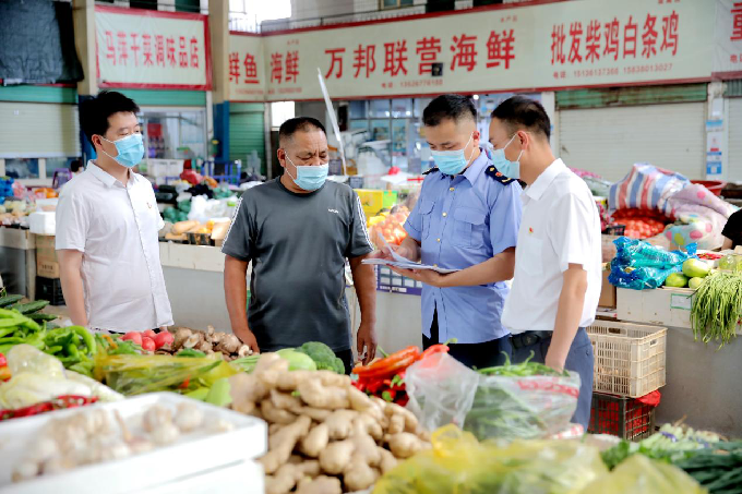 新密市纪委监委围绕群众关心的食品安全问题,压实食品安全监管责任,会同市场监管部门前往农贸市场联合监督检查,守护人民群众“舌尖上的安全”,让群众吃得安心放心舒心。(新密市纪委监委 杨宗昊 摄)