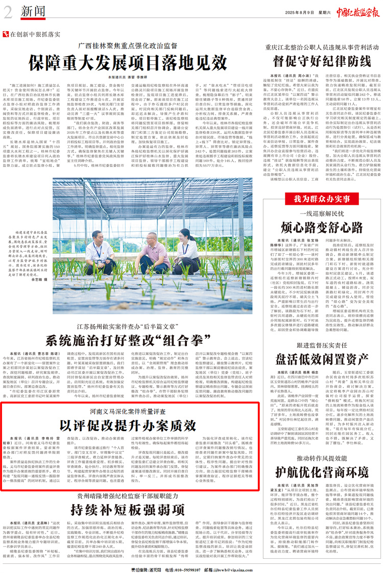 案件质量是执纪执法工作的生命线。义马市纪委监委将案件质量评查作为提升办案质效的重要抓手,着力构建“发现问题—通报反馈—跟踪督办—整改提高”的闭环机制,通过以查促改、以改促治,推动办案质效提升。