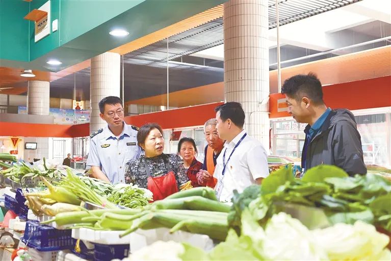 江苏省高邮市纪委监委聚焦群众最关心最直接最现实的利益问题,将刁难群众、吃拿卡要等问题作为整治重点,联合市场监督管理等部门组成督查小组,通过“四不两直”方式开展监督检查。图为近日,督查小组在市区内菜场走访群众了解情况。谭倩 摄