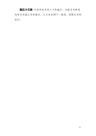 第五十三条 本条例自发布之日起施行。此前发布的其 他有关巡视工作的规定,凡与本条例不一致的,按照本条例 执行。 - 22 -