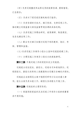 (九)负责巡视工作领导小组办公室和巡视组党建工作;