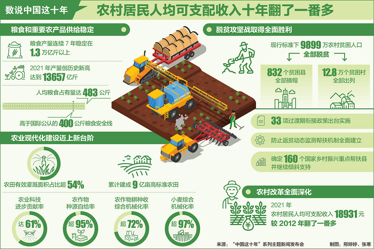 数说中国这十年丨农村居民人均可支配收入十年翻了一番多