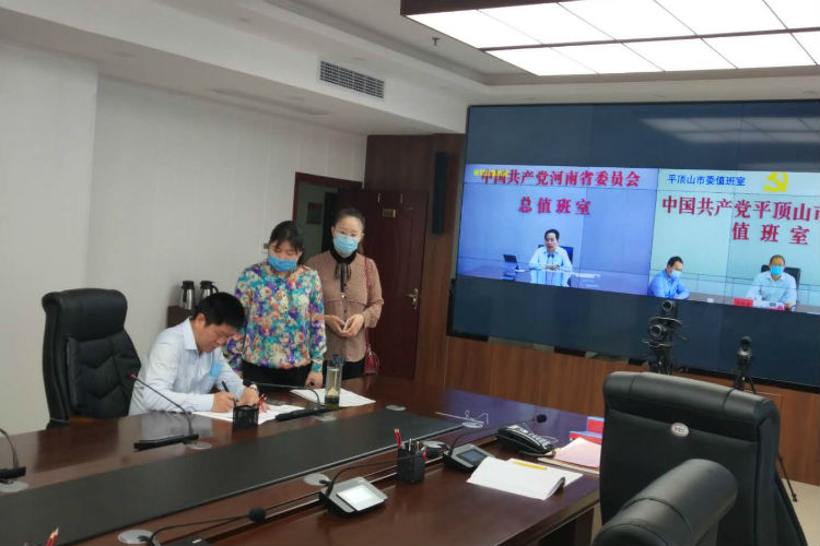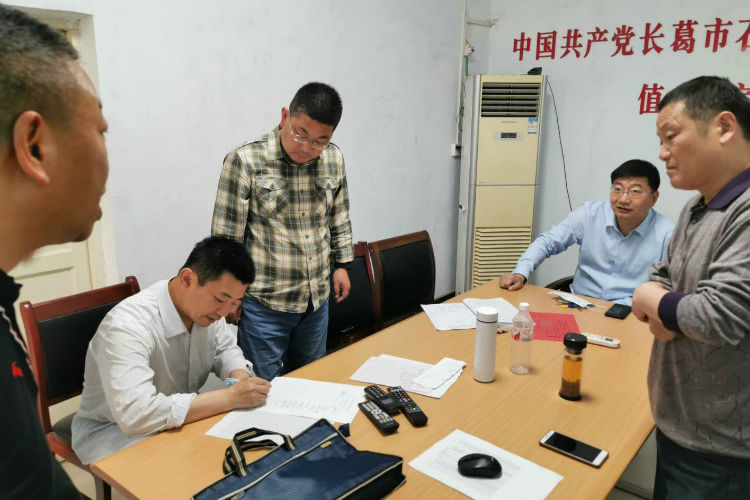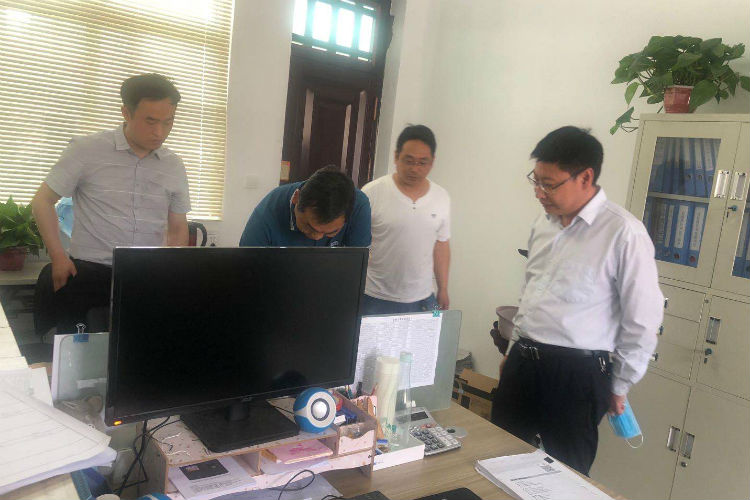 组织部同志在老城镇详细询问值班值守情况,认真查阅值班日志,核实值班人员在岗情况。