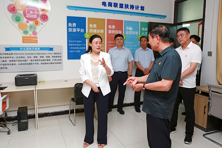 在东李庄社区电商孵化基地,方婷认真听取了东李庄社区电商平台建设运行情况和电商产业园筹备情况,对东李庄社区党支部党建引领发展的做法给予充分肯定,勉励社区党员干部进一步理清思路,规划好高效农业和电商产业,增强发展内生动力,发展壮大社区集体经济,千方百计增加群众收入。